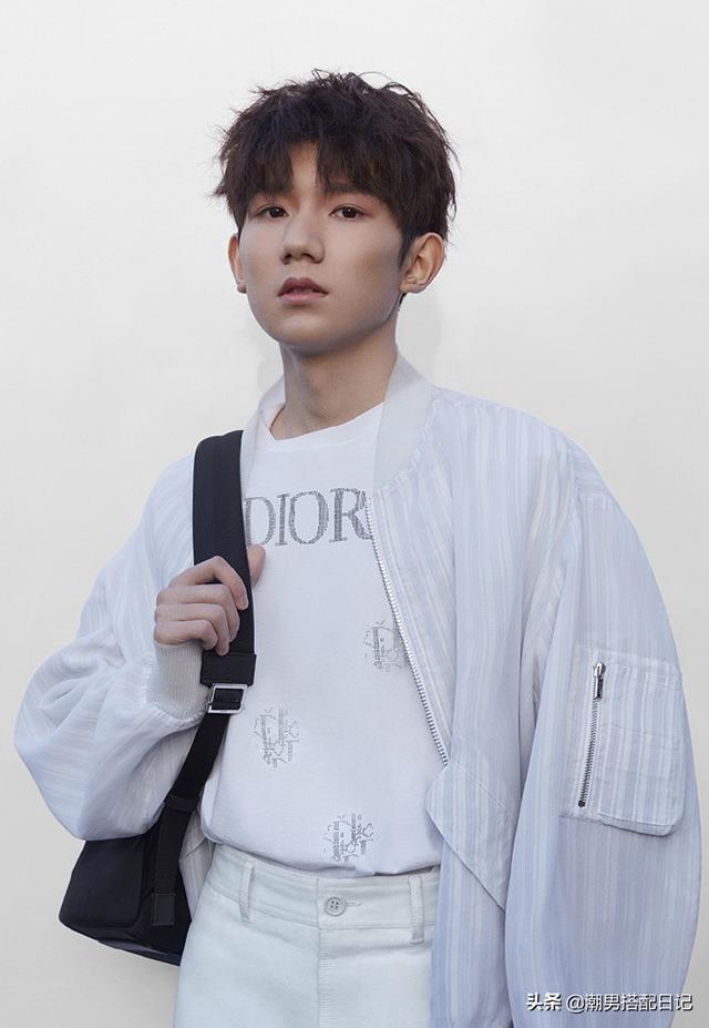 最后一套银白色条纹夹克搭配最新款T恤清爽帅气之余还尽显王源本身的率性光芒。纯白俊逸的少年,自由自在的行走,无限魅力受众于万众期待。